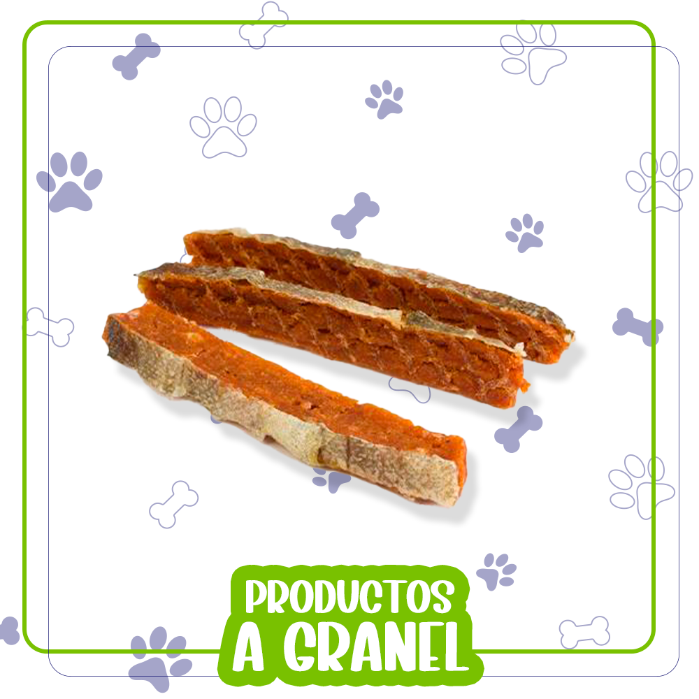 COMPOSICIÓN: Salmón 82%, Piel de pescado 10%, Almidón 3,7%, Glicerina 2%, Sorbitol 2%, Sal 0,2%, Sorbato de potasio 0,1%.