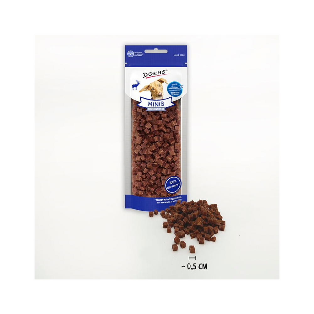 Dokas Minis Carne de Ciervo es la opción ideal para tutores exigentes que buscan un snack natural, delicioso y adecuado para su fiel compañero. ¡Convierte cada día en una oportunidad de premiar a tu perro con lo mejor!