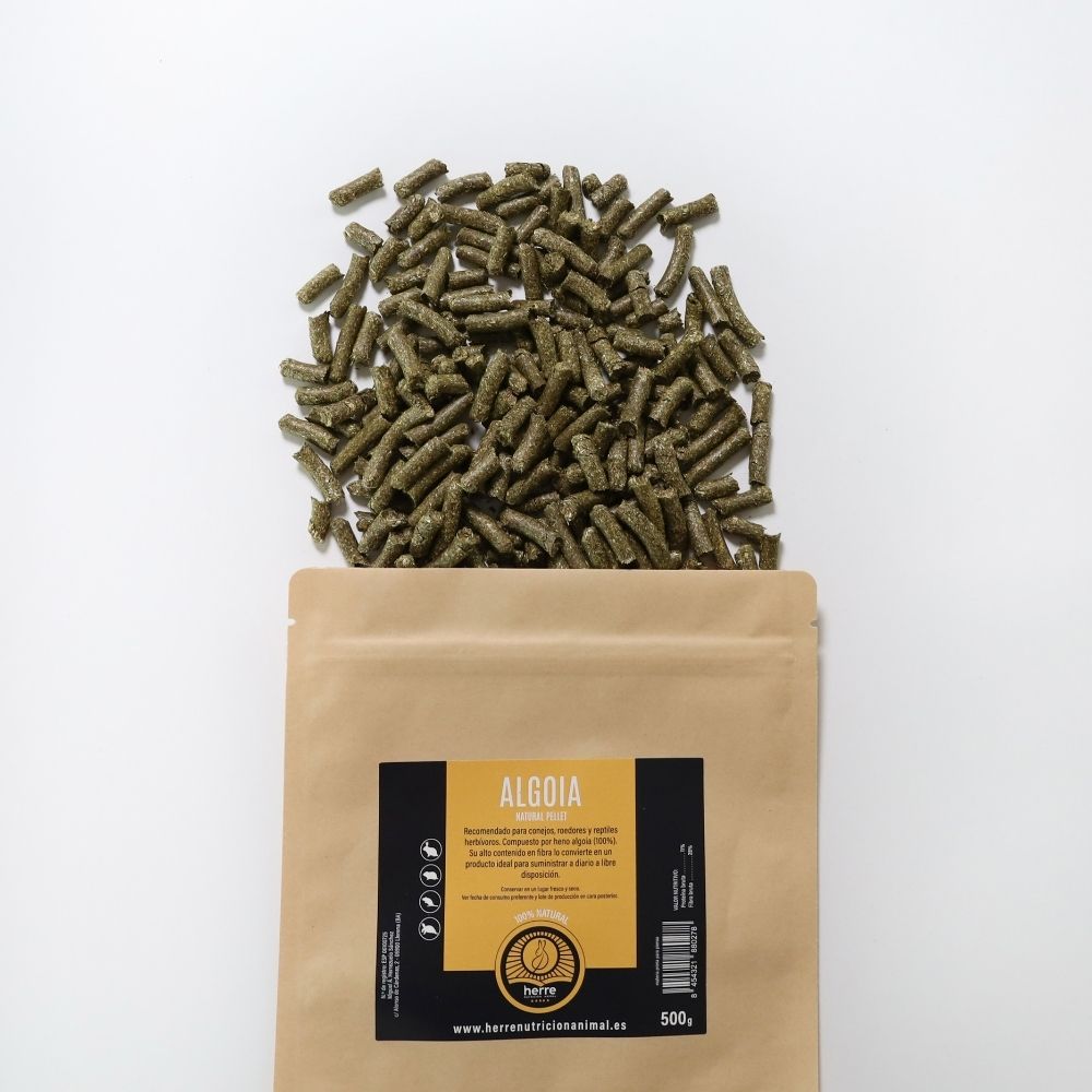 Disponible en formato de 500 gramos, el Natural Pellet – Algoia es perfecto para quienes buscan una opción saludable y completa en la alimentación de sus mascotas.