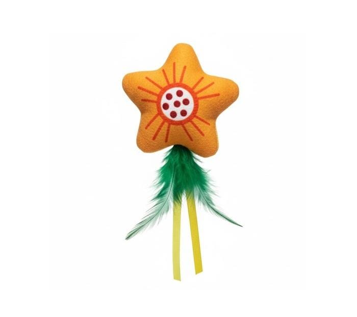 Peluche ligero con forma de estrella pensado para caza indoor: fácil de patear, perseguir y transportar. Aúna catnip en el interior y matatabi (silvervine) para un doble estímulo olfativo, y suma colas (pluma + cintas) que despiertan el instinto predador. Diámetro aprox.: 8 cm.