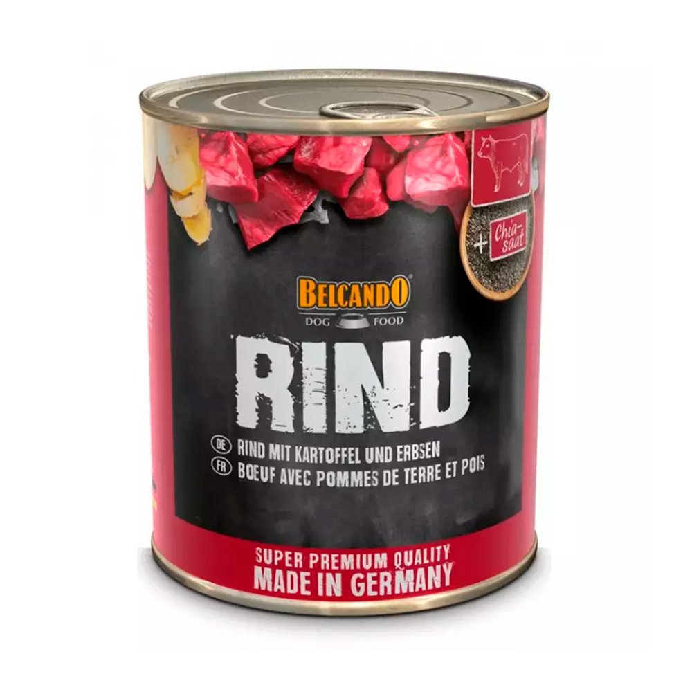 | Ingredientes Principales | Carne, corazón, pulmón, panza, hígado, rims e ubres de ternera (63 %); caldo de ternera (26,5 %); patatas (4 %); guisantes (4 %); semillas de chía (1 %); cáscaras de huevo, secas (0,5 %); minerales (0,5 %); aceite de cardo (0,5 %) |