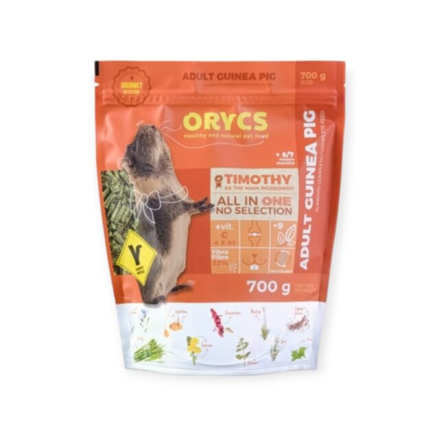Pienso 100% natural , suplementado con vitamina C. Los conejos porquines no sintetizan la vitamina C, por lo que es necesario aportarla.