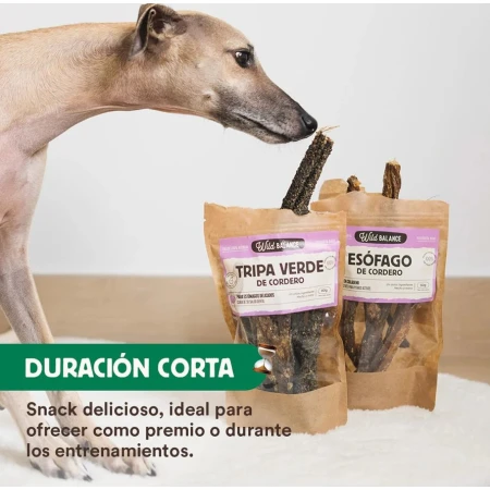 Pureza Total: Como todos los snacks Wild Balance, es 100% natural, con un solo ingrediente (Tripa Verde de Cordero) y libre de aditivos, colorantes o conservantes.