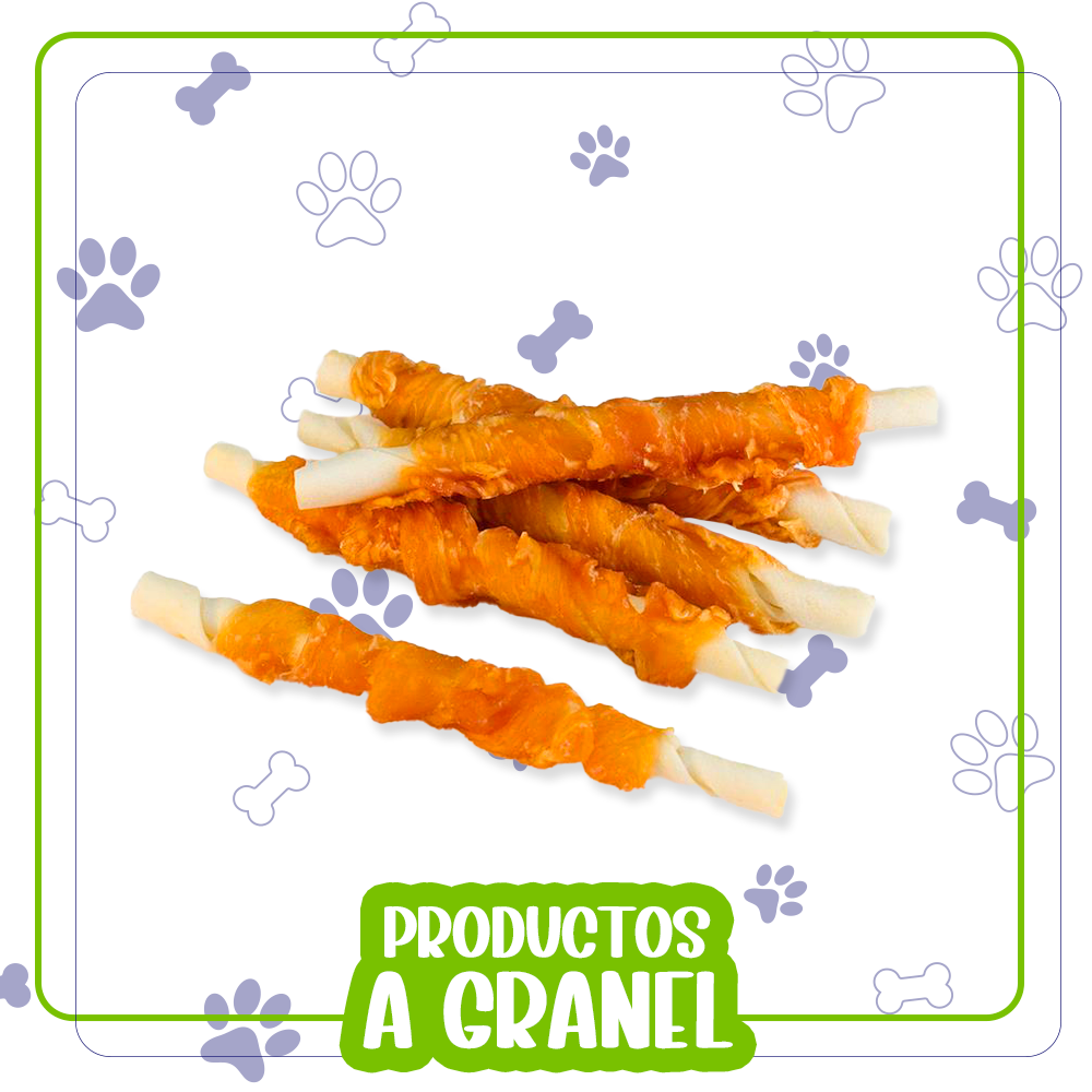 COMPOSICIÓN: Carne de pollo 52%, Cuero crudo 41%, Proteinas vegetales 1,5%, Glicerina 2,8%, Sorbitol 2,5%, Sal 0,2%.